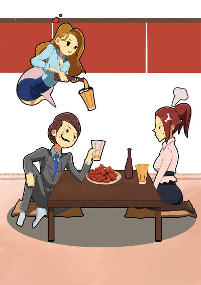 여느 때처럼 1차, 2차, 3차로 이어지는 회식. 그런데 왠지 모르게 기분이 불편하다. 차수가 늘어날수록 소위 '섹드립'들이 난무한다. '남자친구가 뭐 해줄 때가 제일 좋아?', '어디까지 가봤어?' '넌 볼륨이 있어서 남친이 좋아하겠다.' 등등. 3,40대 선배들이 20대 초반의 어린 후배를 앞에 두고 추궁하듯 물어보는걸 보고 있자면 어쩐지 불편하다.