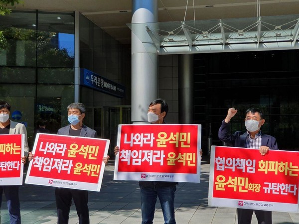 전국언론노동조합 SBS본부는 지난 7일부터 윤석민 회장이 협의 테이블에 나설 때까지 서울 여의도 태영건설 사옥 앞에서 릴레이 집회를 진행하고 있다.