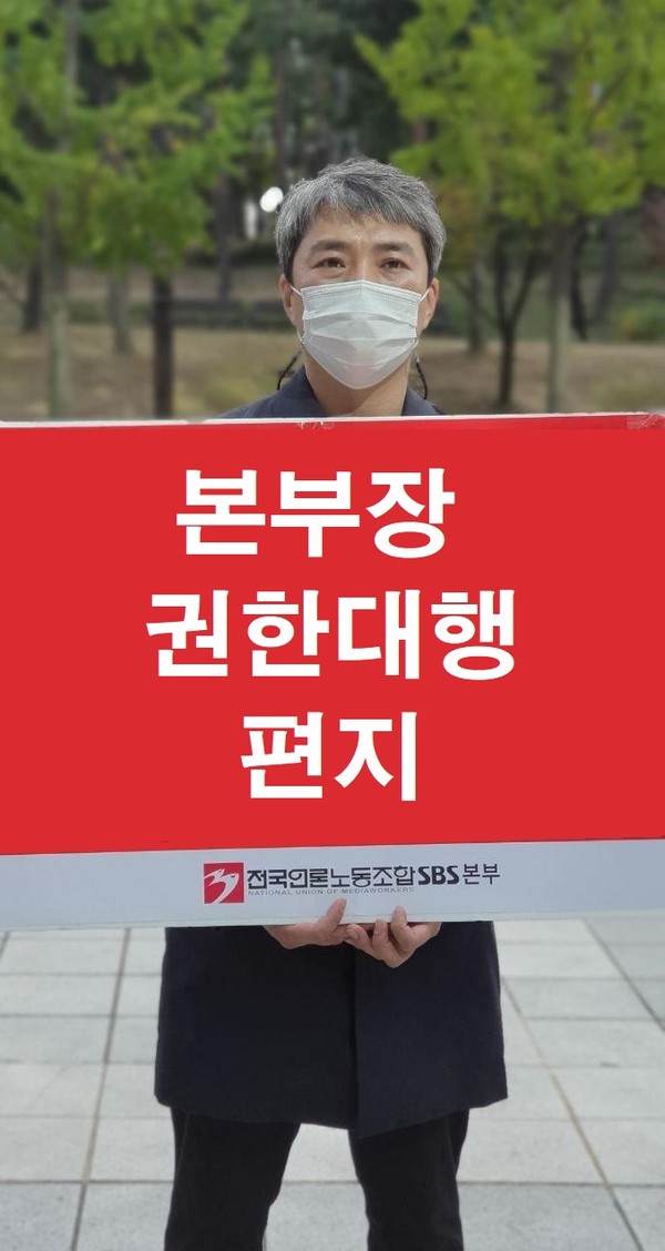 조합원들께서 해결하셔야 할 문제가 있습니다. 현재 SBS지부장과 SBS본부장이 공석입니다. 현재 제가 SBS본부장 권한대행을 맡고 있지만, 보궐선거를 통해 SBS지부장을 겸하는 SBS본부장을 선출하는 게 급선무입니다. SBS노동조합의 가장 큰 위기는 SBS지부장과 SBS본부장을 자주적으로 선출하지 못할 때 오는 것이라 생각합니다. 시대적인 흐름을 볼 때 SBS본부장이라는 자리는 명쾌한 해답을 제시하는 자리가 아니라 조합원들의 의견을 듣고 수렴하는 자리가 아닐까 생각합니다. SBS지부 조합원들의 책임 있는 관심과 참여를 부탁드립니다.