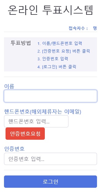 휴대전화 문자의 링크를 클릭하면 다음과 같은 화면이 뜹니다. 이름을 적고 인증 절차를 거칩니다.