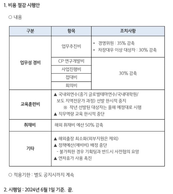 시행안 중에 ‘교육훈련비 중단’ 대목을 보면 헛웃음이 나온다. 국내외 연수 선발과 직무 역량 교육의 중단 등 직원에 대한 투자부터 삭감하는 것이 과연 미래를 내다보는 경영인지 묻지 않을 수 없다. 회사는 사장이 올림픽 출장도 취소했다며 솔선 사례라고 내세웠지만 노동조합이 보기엔 ‘사장도 이렇게 하는데 직원들도 희생하라’는 강요로밖에 들리지 않는다. 사장이 올림픽 출장 한 번 안 가는 것과, 직원들이 국내외에서 기량을 갈고 닦을 기회를 잃는 것이 과연 등가로 놓을 수 있는 사안인가?