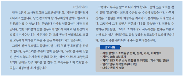 *자격: SBS 지부 소속 조합원 모두(연령, 기수 제한 없음)