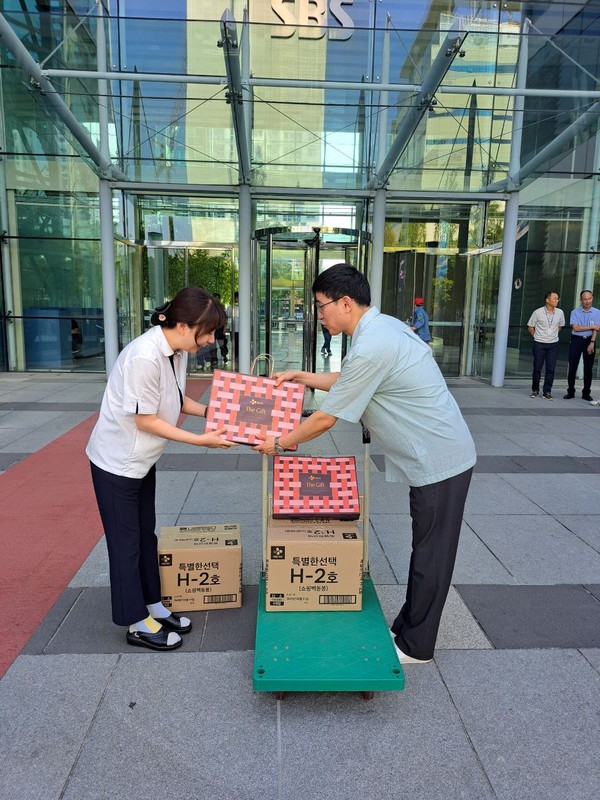 9월11일, 회사에 근무 중인 연대노동자 분들에게 추석 선물을 드렸습니다. 목동과 탄현, 등촌 사옥에서 근무하는 청경, 주차, 미화, 식당, 전산보수, 전화교환, 안내데스크 노동자 320여 명에게 ‘올리고당+카놀라유+햄’ 선물 세트를 전달했습니다. 사옥 곳곳에서 항상 수고해주시는 덕분에 SBS 구성원들이 깨끗하고 안전하며 편리한 환경에서 근무합니다. 늘 감사합니다!