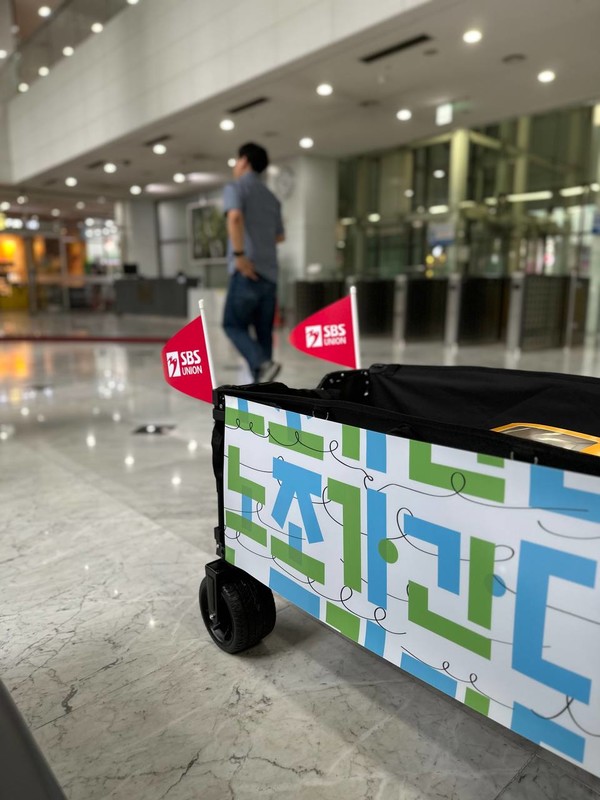 SBS 노동조합이 야심차게 준비한 <노조가 간다> 첫 번째 행선지는 6월 25일 SBS A&T의 VFX팀이었습니다. VFX팀은 SBS의 드라마에 슈퍼 울트라 고퀄 CG를 끊임없이 공급하고 있는 핵심적인 역할을 하고 있지만, 상암동 프리즘타워에서도 외따로 떨어져 있어 외로움이 많은 팀이기도 합니다. 이에 노동조합은 50인분의 간식도 너끈히 담을 수 있는 SUV형 수레에 달콤빠삭한 숲속호두과자와 캐나다 풍미가 듬뿍 담긴 팀홀튼 도너츠 등을 가득 담아 VFX팀 조합원들에게 전달했고, "간식이 다양해서 골라먹는 재미가 있었다", "무료한 오후 시간에 재밌는 간식 이벤트였다" 등등 좋은 말씀 많이 들었습니다.