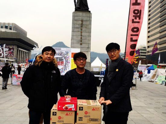 SBS본부는 강추위 속에서 당당하게 광장을 해방구로 만들고 있는